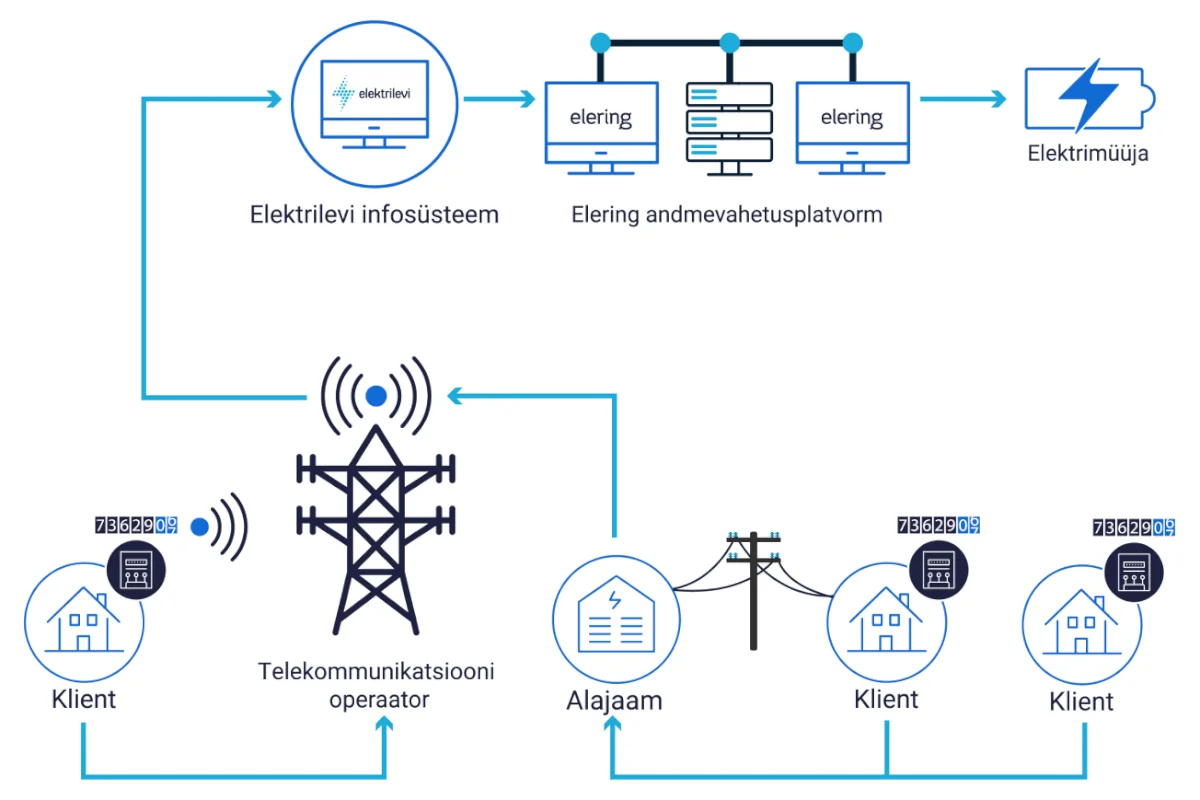 Elektritarbimist mõõdetakse reaalajas. Salvestatud mõõteandmed edastatakse nii elektriliinide kaudu kui ka üle õhu meie infosüsteemi. Infosüsteem kontrollib mõõteandmete õigsust, valideerib ja mõõteandmete puudumisel prognoosib puuduva tarbimise. Edastame kõik mõõteandmed iseteenindusse ja Eleringi andmelattu.